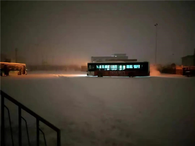 迎著風雪,首班車順利發(fā)車