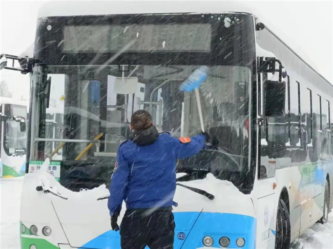 凌晨4點多,第一班車的駕駛員就已經(jīng)提前到崗,清掃積雪,預熱車輛...