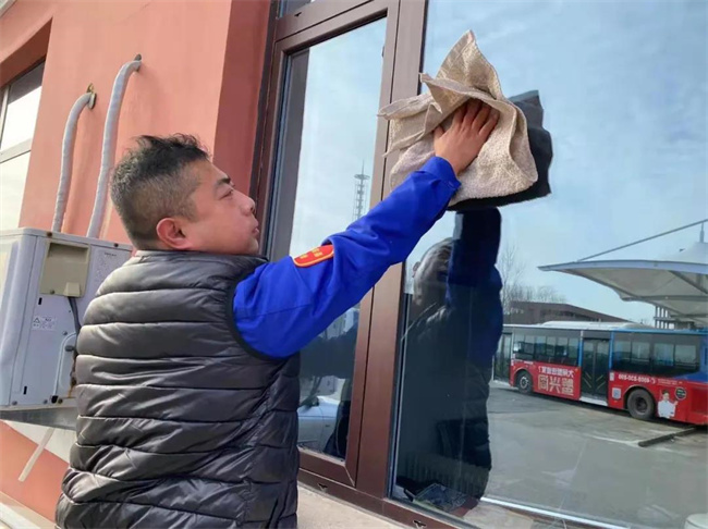 帶班隊(duì)長及黨員駕駛員王鳳岐、蘇野拿起工具,對駕駛員休息室、站區(qū)欄桿等衛(wèi)生進(jìn)行清潔