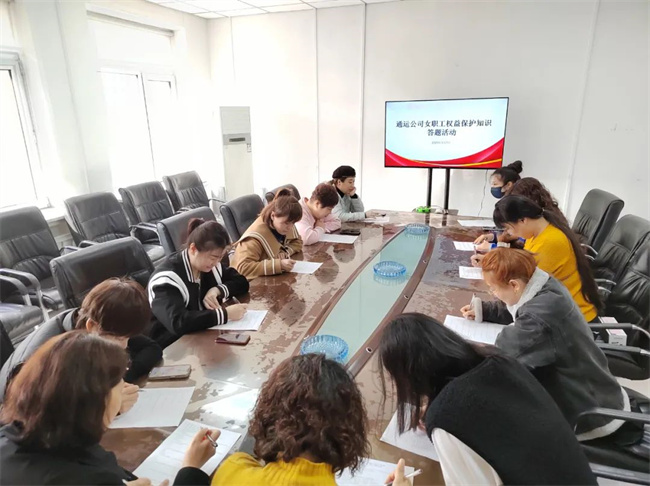 為慶?!叭恕眹?guó)際婦女節(jié),進(jìn)一步維護(hù)女職工合法權(quán)益,不斷增強(qiáng)廣大女職工知法、懂法、守法并依法維護(hù)自身權(quán)益的意識(shí)和能力,通運(yùn)公司工會(huì)在3月7日舉辦女職工權(quán)益保護(hù)答題活動(dòng)。