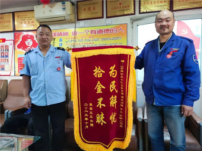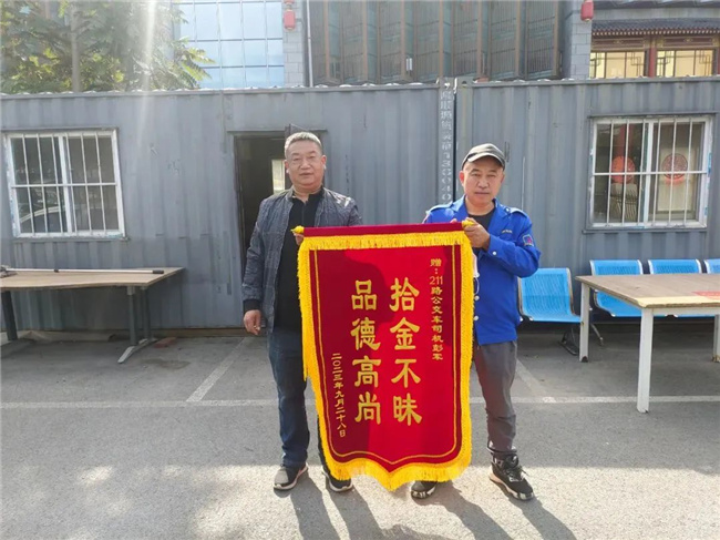 10月7日,一名乘客帶著寫(xiě)有“拾金不昧 品德高尚”的錦旗來(lái)到211.222路車(chē)隊(duì),以此表達(dá)對(duì)駕駛員彭軍的感激之情。