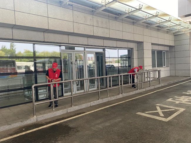 108.100路車隊(duì)組成的志愿服務(wù)隊(duì)來(lái)到沈陽(yáng)南站公交樞紐站,認(rèn)真擦拭圍欄及站牌,清掃地面,使樞紐站整潔有序。