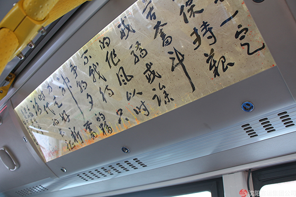 昨日,集團公司領(lǐng)導班子一同前往全運五路公交樞紐站,檢查全國首條“藝術(shù)公交”130路車身設計,該線路將成為我國首條“行走的藝術(shù)走廊”。 為給市民,乘客提供美觀、舒適、藝術(shù)氣息濃厚的乘車環(huán)境,集團公司與和平區(qū)文聯(lián)共同設計車身裝飾。首臺“藝術(shù)公交”車身外采用我市書法大家的書法作品,充分體現(xiàn)了城市獨有的文化底蘊。車廂內(nèi)看板展示了名家書法真跡,仿若置于翰林書院。書法作品以切實增強意識形態(tài)為目的,以宣傳貫徹十九大精神為主題。此外,車廂前端一側(cè)設有液晶顯示屏,播放各種藝術(shù)形式的短片。使得公交車融入了文化的內(nèi)涵,搖身一變成為了城市“流動的藝術(shù)展廳?!?/p>