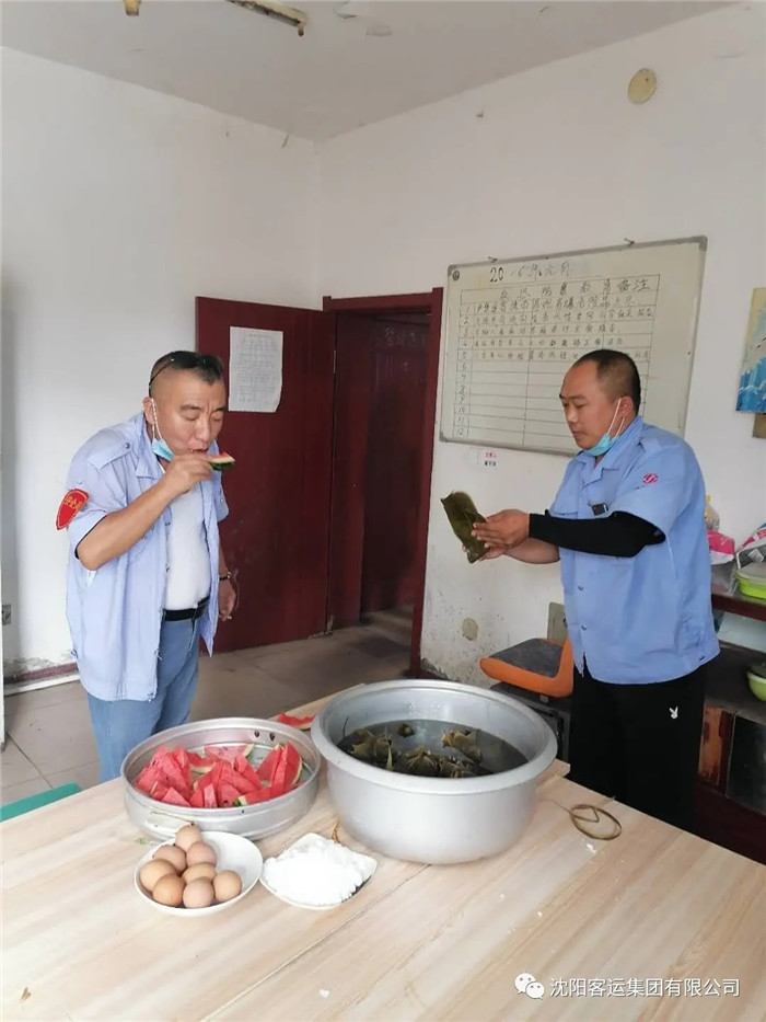 端午節(jié),239、252車隊為一線員工準(zhǔn)備了粽子、雞蛋、水果等食品,駕駛員們吃粽子頂雞蛋,享受著節(jié)日的快樂。