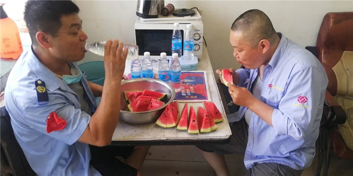 康利公司各車隊(duì)為駕駛員準(zhǔn)備了豐盛的午餐——餃子,為了給駕駛員防暑降溫、緩解疲勞,準(zhǔn)備了冰鎮(zhèn)西瓜和冰鎮(zhèn)礦泉水。同時也叮囑駕駛員要注意休息,保證身心健康。